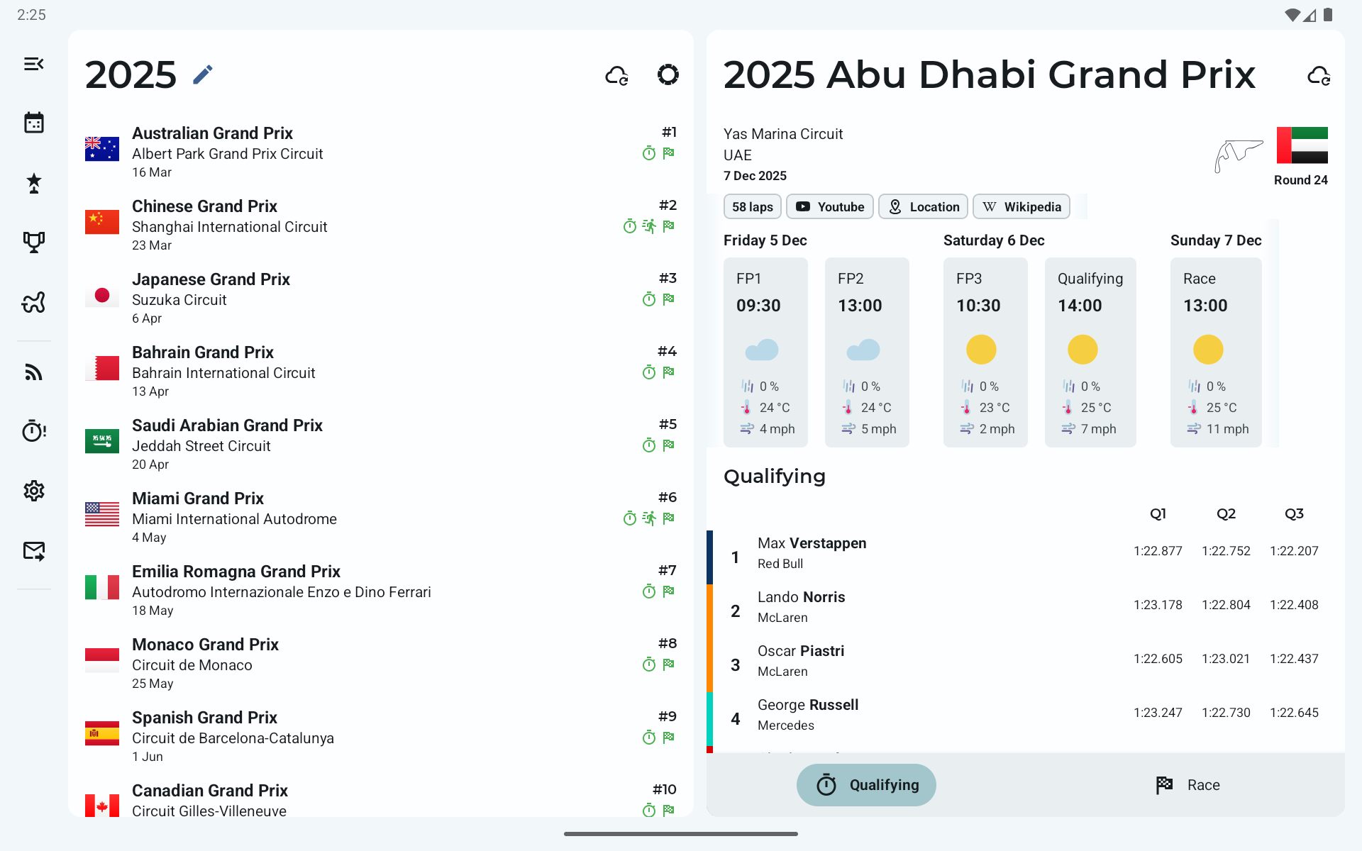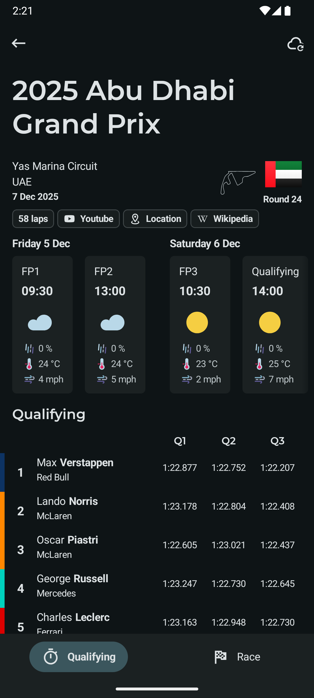- Qualifying results up to the latest race
