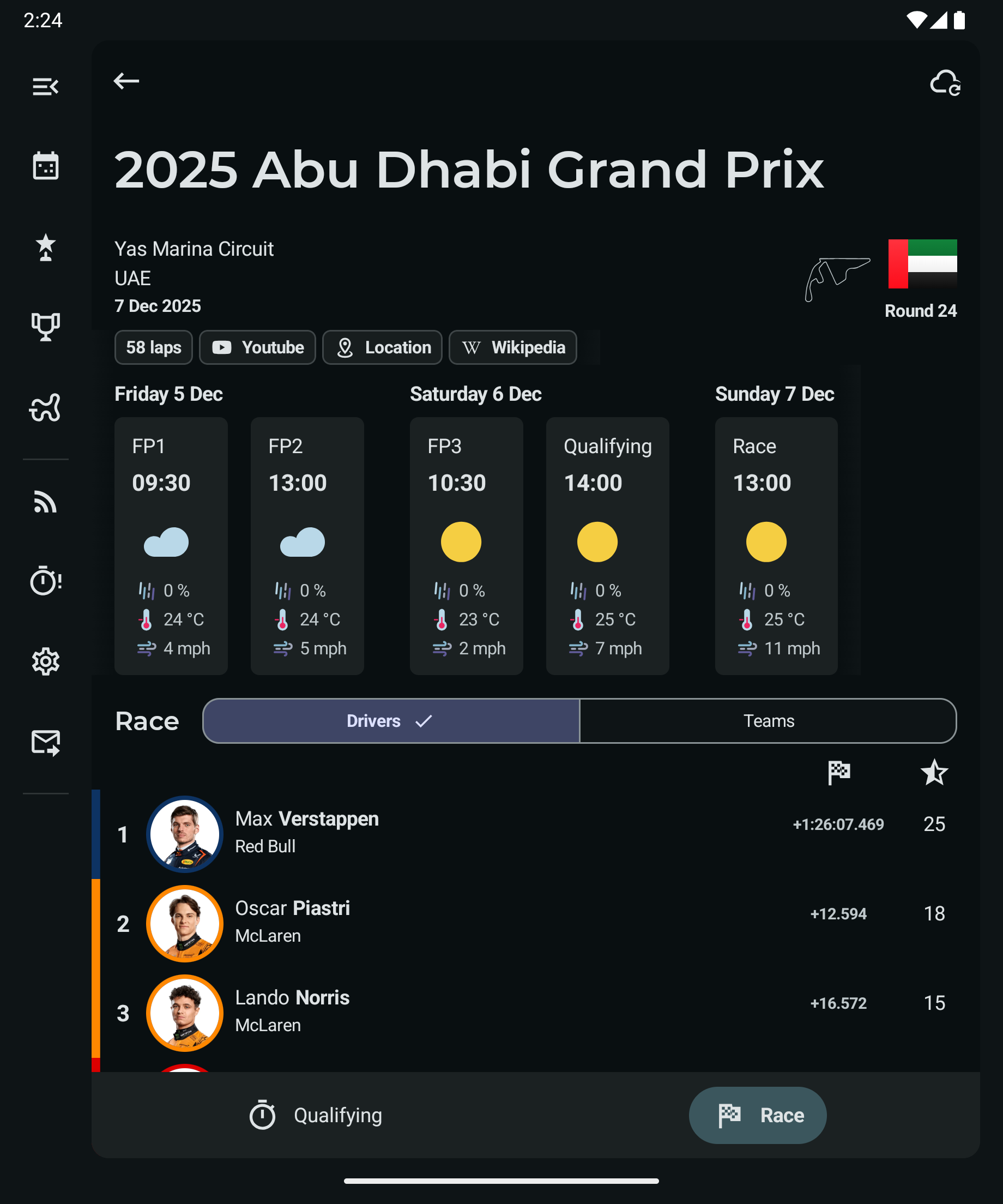 - Notifications support for races, sprint and qualifying sessions